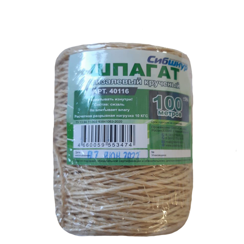 Шпагат сизалевый крученый 100м 1/70 (Сибшнур)