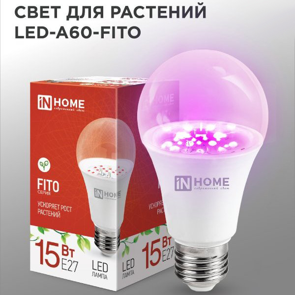 Светодиодные лампы LED-A60-FITO предназначены для стимуляции роста рассады и микрозелени, дополнительной подсветки комнатных светолюбивых растений, выгонки луковичных цветов в осенне-зимний период. Лампы излучают сбалансированный свет, который способствует укреплению стебля и росту плотных листьев. Использование светодиодов снижает испарение, тем самым, увеличивая период между поливами. Расположите лампу на расстоянии 30 см от растения (но не более 60 см). Рекомендуемое время освещения – от 8 до 14 часов. Не забывайте оставлять растений на 7-8 часов в темноте для обеспечения темновой фазы фотосинтеза.