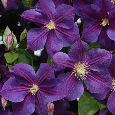 Очень сильнорастущий, устойчивый сорт. Цветки фиолетово-пурпурные, с бежевыми тычинками, диаметром 10-15 см. Цветёт обильно с июня по сентябрь, но цветки завязываются на высоте 1,5 – 3 м, поэтому особенно подходит для посадки у высоких опор, ограждений, на втором плане, на светлом фоне. Обрезка сильная (III группа).