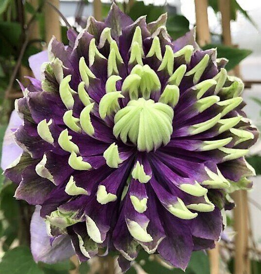 Самый последний выведенный сорт селекционера из Японии! Цветки средней величины, всегда махровые, имеют три стадии раскрытия бутонов и меняют форму по мере цветения, очень декоративные, фиолетово-голубые с зелёно-жёлтыми кончиками лепестков. Цветёт всё лето на побегах текущего года. В июне цветение наиболее обильное. За опоры цепляется листовыми черенками. Рекомендуется для декорирования любых отдельно стоящих опор, а также стен. Пригоден для выращивания в контейнерах на балконах и террасах. Место солнечное (но не жаркое) или полутенистое. Обрезка сильная (III группа).